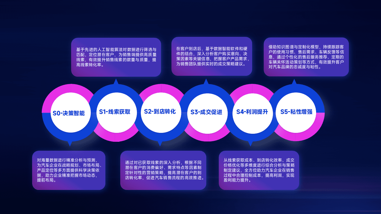 通过拓宽潜在客户来源、、优化线索分配并提高到店转化率,,,以增强销售效率。。同时,,,利用线索数据不断优化分析模型,,有效提升转化率,,,扩大营销影响力。。。